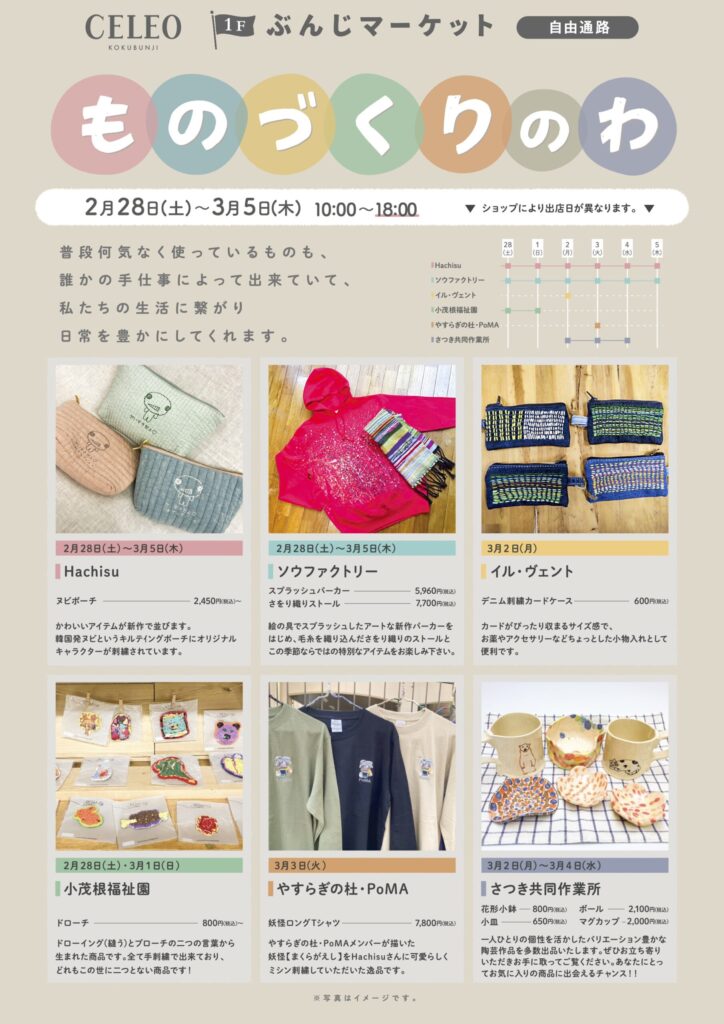 2/28(土)〜3/5(木) ものづくりのわ@セレオ国分寺 出店します!
