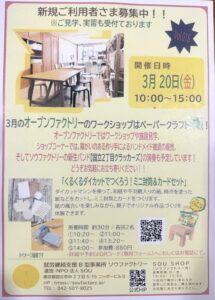 ソウファクトリーでは、月に一度、どなたでもお越しいただけるオープンイベント「オープンファクトリー」を開催しています。 3月のオープンファクトリーは、3月20日(金・祝)の開催です。 封筒づくり体験と施設見学、ショップコー […]
