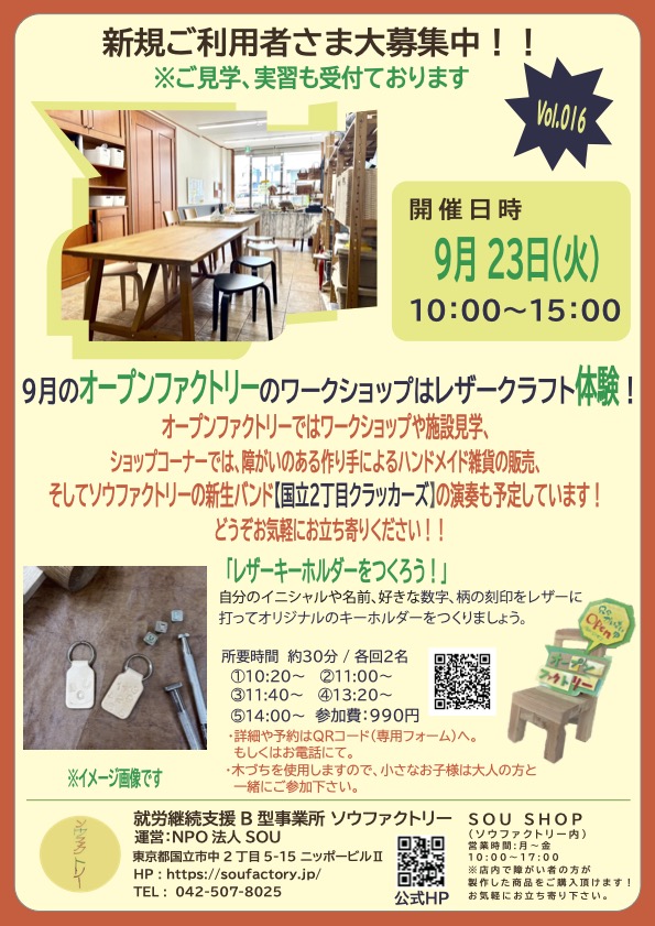 ソウファクトリーでは、月に一度、どなたでもお越しいただけるオープンイベント